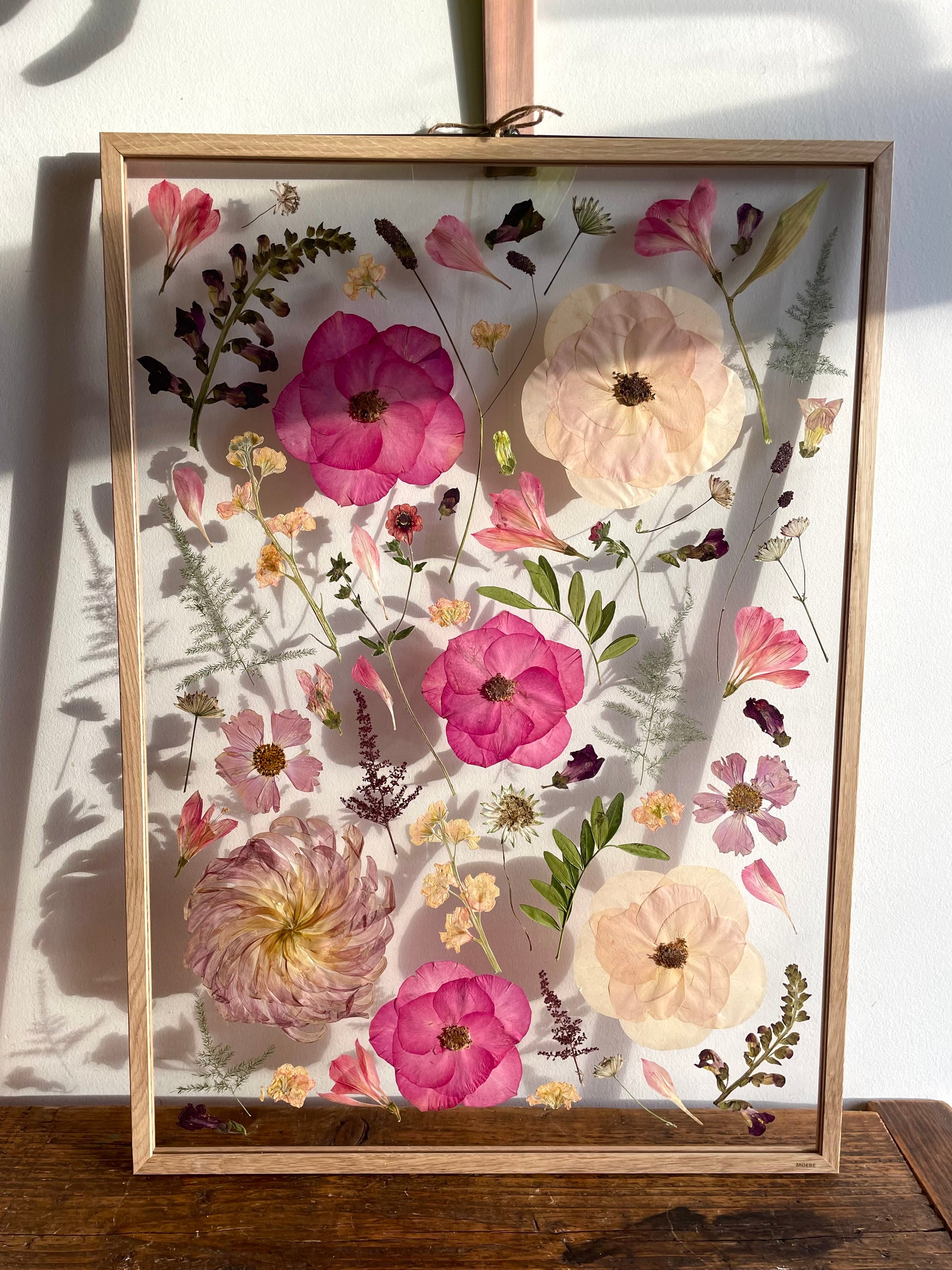 Step 4: Pressing Begins As soon as your flowers arrive, I begin the careful process of dismantling and pressing them to preserve their beauty. Important Notes The full process from flower arrival to finished frame takes 6–8 weeks. Some flowers (e.g., roses, peonies) may be too large to press whole and will need to be separated. Rest assured, I always aim to incorporate as many of your flowers as possible.